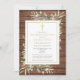 Une invitation de célébration de vie personnalisée avec photo et verdure sur fond de panneaux de bois rustique. Conçu par Thisisnotme©