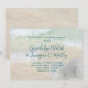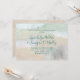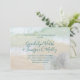 Cartes d'invitation de mariage avec deux dollars de sable et fond de scène de plage. Le texte bleu-vert foncé commence par "Vous êtes invités à la cérémonie de mariage unissant" avec les noms du couple en écriture surdimensionnée. Le reste des informations sur la cérémonie est imprimé dans un paragraphe. L'arrière-plan est de l'écume de mer venant sur le rivage, avec deux dollars de sable blancs dans le coin inférieur droit. Ce design est également disponible en téléchargement instantané.