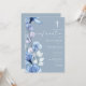 Cette élégante invitation de confirmation fleuri transparent bleu poussiéreux peut être personnalisée avec vos informations en typographie chic avec votre monogramme au verso. Conçu par Thisisnotme©