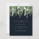 Un élégant faire-part Save The Date art nouveau parfait pour un mariage bohème sophistiqué. Les tons bleu marine foncé et vert forêt avec de l'eucalyptus et des fougères qui pendent évoquent la romance et la magie des bois enchantés.
