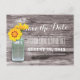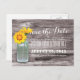 Annonces de faire-part de conservation de pot Mason rustique & marguerite jaune en bois.