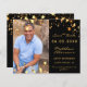 Sur le devant : Ajoutez une photo de taille verticale. Une couleur de fond noir classique, décorée d'étoiles dorées factices. Personnalisez et ajoutez un nom et des détails. Lettres dorées. Pour lui et pour elle.