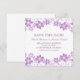 Annonce de date de mariage simple et élégante à fleurs simples en lavande avec des cascades de jolies vignes et fleurs. Cette invitation de date de mariage élégante est parfaite pour annoncer un mariage de printemps ou d'été. Facile à personnaliser, il suffit d'ajouter vos détails de mariage. Cliquez sur "Personnaliser" pour trouver plus d'options de personnalisation.