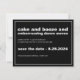 Une carte de sauvegarde de date de mariage décalée et drôle pour attirer l'attention de vos invités et les préparer à votre grand événement. Ce design présente un texte gras et une mise en page moderne. Tout le texte peut être modifié avec la formulation souhaitée. Le design simple en noir et blanc est décontracté et amusant. Le verso de la carte comporte un modèle de photo pour télécharger votre photo préférée.