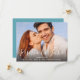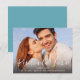 Annoncez vos fiançailles avec nos invitations modernes "Save the Date" avec un lettrage tendance de style écriture manuscrite. Conçues pour mettre en valeur votre photo de couple horizontale ou en format paysage, cette carte simple présente une superposition de texte bleu turquoise avec vos noms, date de mariage et lieu de mariage. Le verso des cartes est d'une couleur bleu turquoise uni complémentaire. Pour voir la suite de mariage assortie, visitez DoTellABelle sur Zazzle.