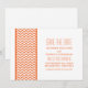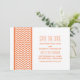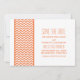 Annonce de sauvegarde de date chic et moderne avec une bordure à motif chevron simple en orange et blanc. Ce design élégant donnera le ton pour un mariage élégant. Facile à personnaliser, il suffit d'ajouter vos détails de mariage dans les champs de texte fournis. Cliquez sur "Personnaliser" pour trouver plus d'options de personnalisation.
