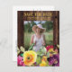 Récupération en bois brun foncé rustique Enregistrer la carte postale Date/Faire-part avec aquarelle jaune et violet coloré floral et espace pour votre photo. Contactez-nous pour obtenir de l'aide sur la personnalisation ou pour demander des produits correspondants.