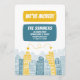 Motif de style rétro avec des bâtiments de dessins animés jaunes et bleus pour un nouveau faire-part d'adresse très exclusif. ♥ Collection correspondante pour la COORDINATION DES ARTICLES. ♥ Oeuvre originale de PUPSIKU STUDIO. Produit 100% exclusif.