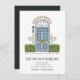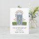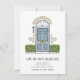 Annonces modernes et charmantes, faites connaître à vos amis et à votre famille votre nouvelle maison douce! Le design présente une illustration de porte bleu clair esquissée flanquée de buissons verts, avec "venez frapper à notre porte" en-dessous. Personnalisez avec votre nouvelle adresse et nom de famille ou nom de famille.
