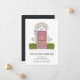Annonces modernes et charmantes, faites connaître à vos amis et à votre famille votre nouvelle maison douce! Le design présente une illustration de porte rose esquissée flanquée de buissons verts, avec "venez frapper à notre porte" en-dessous. Personnalisez avec votre nouvelle adresse et nom de famille ou nom de famille.