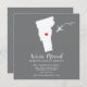 Faire-part mobile moderne avec l'état du Vermont avec un coeur rouge & avion sur un arrière - plan gris. La couleur arrière - plan peut être changée facilement en cliquant sur personnaliser, puis cliquez pour customiser plus loin pour voir notre sélecteur de couleurs. De là, vous pouvez aussi déplacer l'avion et le coeur! Contactez notre magasin si vous avez besoin d'aide ou si vous avez besoin d'un autre état.