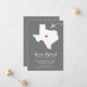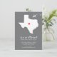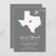 Faire-part moderne en mouvement avec l'état du Texas avec un coeur rouge et avion sur un arrière - plan gris. La couleur arrière - plan peut être changée facilement en cliquant sur personnaliser, puis cliquez pour customiser plus loin pour voir notre sélecteur de couleurs. De là, vous pouvez aussi déplacer l'avion et le coeur! Contactez notre magasin si vous avez besoin d'aide ou si vous avez besoin d'un autre état.