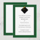 Faire-part classique de graduation avec casquette noir et goût or sur arrière - plan vert.