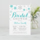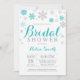 Faire-part de douche de mariée hivernale. Flocon de neige argenté sarcelle et gris. Invitation de douche de mariée de vacances de Noël. Fond blanc. Pour une personnalisation supplémentaire, veuillez cliquer sur le bouton "Personnaliser" et utiliser notre outil de conception pour modifier ce modèle.