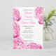 Faire-part de Fiançailles Élégant Catherine Pink Peony avec Overlay de Fleurs de Peonies Roses Floral Blanc Chic Classique Jardin Féminin Modèle
