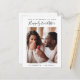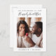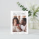 Carte postale de faire-part de fiançailles moderne minimaliste avec votre photo, « Le début de notre bonheur éternel » dans un mélange de typographie simple et d'une écriture élégante et vos prénoms au recto. Au verso, personnalisez votre message de faire-part de fiançailles et ajoutez nos noms dans une écriture qui ressemble à une signature.