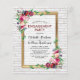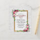 Cartes d'invitation de fête de fiançailles vintage chic à petit budget représentant un mur de briques de Château blanc rustique, un cadre doré classique, une composition florale aquarelle automnale dans des tons roses et bordeaux, et un modèle de texte de célébration. Cliquez sur le bouton « Personnaliser » pour personnaliser davantage ce modèle.