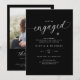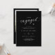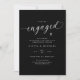 Préparez le terrain pour une célébration élégante avec ces faire-part de fiançailles noirs modernes dotés d'une typographie élégante en écriture blanche. Le design minimaliste allie simplicité et sophistication, tandis que la photo du couple au dos ajoute une touche personnelle. Parfait pour les hôtes qui prévoient une fête de fiançailles chic et contemporaine qui se sent à la fois élégante et intemporelle.