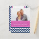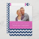 Cartes postales de faire-part de fiançailles avec photo dans un élégant motif rétro chevron zigzags bleu marine foncé, rose fuchsia et blanc, personnalisables avec vos noms, le moyen idéal d'annoncer vos fiançailles à vos amis et à votre famille. Disponible dans une large gamme de produits de mariage assortis.