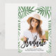 Annoncez votre graduation en style avec un chic faire-part de graduation de brise tropicale. Le design tropical comprend des feuilles de palmiers, le mot diplômé dans une police de script tendance, et des espaces réservés pour votre image et votre texte.