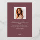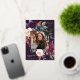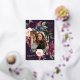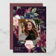 Notre faire-part de graduation Plum Blossom encadre une photo de votre diplômé avec une élégante bordure carré de feuillage d'aquarelle luxuriante et des fleurs en rose rousse, pourpre bordeaux et bleu foncé poussiéreux, avec de vrais garnitures en feuille d'or rose sur un riche arrière - plan violet foncé. Personnalisez avec le nom de votre diplômé, l'année de classe et l'école. Ajoutez un message personnel à l'arrière, ainsi qu'une photo supplémentaire.