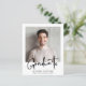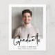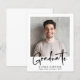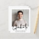 Un faire-part de graduation moderne et économique avec votre photo et "Graduate" dans un script élégant et audacieux. Ajoutez le nom, l'école et l'année de classe de la jeune fille en typographie simple.