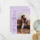 Carte de faire-part de remise de diplômes design et moderne à envoyer à la famille et aux amis. Il y a un cadre en arc de lavande autour de votre photo. Vous pouvez ajouter une deuxième image au verso et le message est modifiable. L'année est écrite sur le côté avec une illustration d'un plafond de graduation à l'intérieur du nombre zéro.