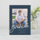 Faire-part d'études avec un script moderne avec un arrière - plan de la marine. L'arrière permet une formulation supplémentaire, qui pourrait doubler comme une invitation.
