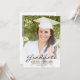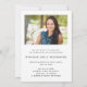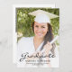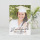 Faire-part moderne de graduation avec une photo verticale personnalisée sur l'avant et une photo horizontale sur l'arrière. Le mot "Graduate" apparaît dans le script noir, avec le nom du diplômé, l'école et l'année de graduation ci-dessous dans sans serif font. Personnalisez l'envers avec des détails sur l'obtention du diplôme et les plans futurs du diplômé en texte noir sur un arrière - plan blanc. Remplacez facilement l'échantillon d'images par des photos de votre propre diplômé. Un écran en dégradé blanc permet de s'assurer que le texte à l'avant de la carte pops. Idéal pour obtenir un diplôme d'études secondaires ou collégiales.
