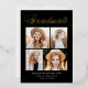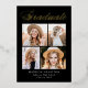 Élégant faire-part de graduation avec "Graduate" affiché en haut dans un script de calligraphie de feuille d'or avec un arrière - plan noir (ou la couleur de votre choix). Le design comprend quatre photos du diplômé présentées dans un style collage avec le nom du diplômé, le nom de l'école et l'année de remise des diplômes indiqués ci-dessous. Les 4 faire-part de graduation photo s'inverse pour afficher du texte facultatif tel que les plans futurs, les détails de la fête de remise de diplômes, etc. Le faire-part chic de graduation est parfait pour annoncer la graduation des diplômés du secondaire et du collège.