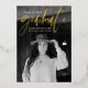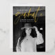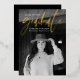 Carte de faire-part de graduation moderne avec la photo préférée de votre diplômé sur le devant avec "Graduate" dans un script manuscrit en feuille d'or. Personnalisez le devant du faire-part en ajoutant le nom du diplômé, le nom de l'école et l'année de diplôme. La faire-part tendance de graduation inverse pour afficher 3 photos supplémentaires avec de l'espace pour le texte tels que les plans futurs, les détails de graduation, les détails de la fête, etc. Le faire-part de diplôme de 4 photos est parfait pour les diplômés du secondaire et du collège.