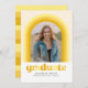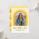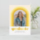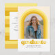 Ce faire-part amusant de graduation comporte une arche avec différentes nuances de jaune autour d'une seule photo. L'arrière de la carte dispose d'un motif à bande de coordination ainsi que d'un espace pour un message personnel ou des détails d'invitation pour une célébration de graduation.