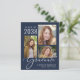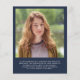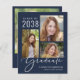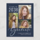 Faire-part de graduation bleue économique avec un collage photo 3 et "Graduate" dans un élégant script blanc. Ajoutez le nom de la diplômée, l'année de classe et l'école ou l'université dans une simple typographie blanche moderne. Au verso, ajoutez une photo supplémentaire et votre message personnalisé. Ce papier semi-brillant budgétaire est similaire en poids au papier photo. Une version plus grande de 5x7 traditionnelle carte stock est également disponible (message nous pour le lien).