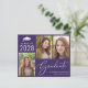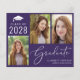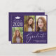 Faire-part de graduation violette simple et économique avec un collage photo de 3 images et "Graduate" dans un élégant script blanc. Ajoutez le nom du diplômé, l'année de classe et l'école ou l'université dans la typographie blanche moderne.