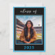 Moderne et chic, cette faire-part de graduation allie noir et blanc classique à des accents de bleu vif. Le design minimal est un design simple et amusant pour célébrer le grand jour du diplômé. Le dos affiche la photo préférée de votre diplômé. Créé par Simply Farmhouse Press.