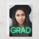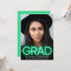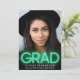 Faire-part de graduation amusante et branchée avec "GRAD" en typographie néon vert vif superposant la photo du diplômé. Personnalisez avec son nom, son année de classe et son école.
