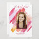 Simple et élégant, ce design moderne de pinceau rose et or peint derrière une photo voûtée avec des bordures d'or est la façon parfaite d'annoncer le diplômé à des amis et à la famille cette année!