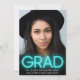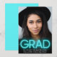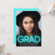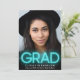 Faire-part de graduation amusante et branchée avec "GRAD" dans une typographie de néon bleu turquoise clair sur la photo du diplômé. Personnalisez avec son nom, son année de classe et son école.