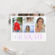 Simple Script Multi Photo Graduation Card présente quatre de vos photos préférées de votre diplôme d'études supérieures ou secondaires sur le devant avec l'élégante couche de calligraphie moderne violet "Graduate". Ajoutez une photo supplémentaire au verso. Simple, élégant et classe. Créé par ©Evco Studio www.zazzle.com/store/evcostudio