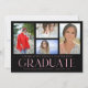 Simple Script Multi Photo Graduation Card présente quatre de vos photos préférées de votre diplômé de l'université ou du lycée sur le devant avec l'élégante couche de calligraphie rose moderne "Graduate". Ajoutez une photo supplémentaire au verso. Simple, élégant et classe. Créé par ©Evco Studio www.zazzle.com/store/evcostudio