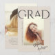 Élégante et contemporaine, cette faire-part de remise de diplômes présente le parcours du diplômé avec une photo exposée au centre. Le mot "Grad" se démarque par son style art déco moderne, qui s'oppose à un arrière - plan neutre, ajoutant une touche de sophistication. Customisez ce faire-part moderne de graduation en photo en incorporant le nom du diplômé, l'année de diplôme et le nom de l'école. Versatile et chic, c'est un choix idéal pour célébrer les jalons du lycée et du collège !