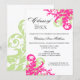 © 2013 Socialite Designs. Célébrez le baccalauréat de votre enfant de l'école secondaire, du collège, de l'université ou d'une autre école postsecondaire avec cette élégante invitation à la baccalauréat rose et vert clair.
