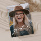 Un script classique simple "gradué" en blanc accentue une seule photo verticale de votre grade. Ce faire-part d'obtention de diplômes fonctionne pour les diplômés du collège ou du secondaire et est assez simple pour laisser briller votre photo. C'est un design intemporel et dispose également d'un dossier rayé avec une couleur personnalisable (par défaut, navy).