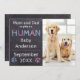 Félicitation ! Laissez votre meilleur chien et nouveau chien de garde annoncer votre grossesse et la nouvelle de son nouveau meilleur ami avec cette adorable carte de faire-part de grossesse pour chien. "Maman et Papa nous reçoivent un Humain...Baby Nom ...Votre Mois/Date 20xx. Envoyer à la famille et aux amis pour la faire-part de grossesse la plus agréable. DROIT D'AUTEUR © 2020 Judy Burrows, Black Dog Art - Tous droits réservés. Faire-part de grossesse de chien