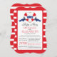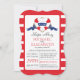 Invitation de la partie d'engagement de Heart Buoy moderne avec une bouée de coeur rouge et bleu et un arrière - plan à rayures rouge et blanc d'une grande audace amusante. Retourner le invitation pour trouver une bande correspondante. Parfait invitation nautique unique pour annoncer votre fiançailles à vos amis et votre famille.