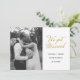 Annoncez votre nouveau statut de jeunes mariés avec ce faire-part de mariage élégant et minimaliste. Caractérisée par un lettrage noir classique et un design simple et moderne, cette carte met magnifiquement en valeur votre photo de mariage préférée. Personnalisez-la facilement avec vos noms, date de mariage et un message sincère pour partager votre grande nouvelle avec vos amis et votre famille. Cette carte personnalisable est le moyen idéal d'envoyer un souvenir personnalisé et magnifique de votre journée spéciale.