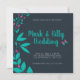Invitation Mariage campagnard bleu bleu turquoise rose marine
