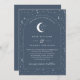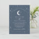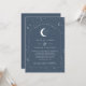 Une lune céleste et une faire-part de mariage à thème étoile avec un arrière - plan gris marine et un texte blanc avec des éléments. Customisez la couleur de l'étoile motif, arrière - plan, remplissage d'arc et élément lune!