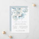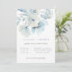Magnifique arrangement floral à l'aquarelle bleu pastel aérien, faire-part de mariage. Design de typographie moderne et chic gris et bleu. Le dos de la carte présente une couleur unie en bleu pastel, qui peut être personnalisée.
