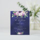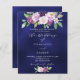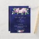 Un arrière - plan bleu marine à l'avant. La couleur bleue est inégale. Décoré de fleurs violettes et violettes aquarelles et verdure. Personnalisez et ajoutez vos noms et les détails de votre fête. 1 feuille = 1 invite imprimé bord à bord.
